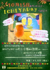 “ICHI-YA Day” is back again ! Enjoy a special all-you-can-drink deal at ICHI-YA, the pub at Kyoto_Ichijoji_Brewery!!