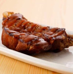 The spare ribs are slowly simmered in an original broth infused with wine, then finished with a spicy original sauce. So perfectly with Ichijoji Red Ale—both in flavor and beautiful color!