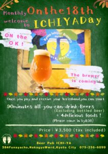 Tuesday, November 18th is a special service day at ICHI-YA, the flagship pub of Kyoto Ichijoji Brewery!