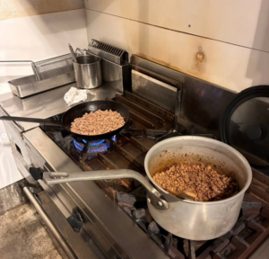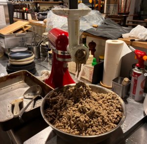 The second photo shows the filling for agnolotti del prin (ravioli). This is a local dish from Piedmont in northwest Italy, where pasta is stuffed with ingredients.