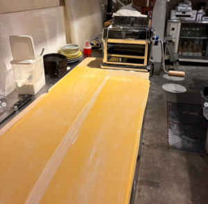 平打ちロングパスタ「タリアテッレ」の制作風景。