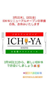 ICHI-YA,Kyoto_Ichijoji_Brewery’s pub, will be closed yesterday and today for renovation preparations.